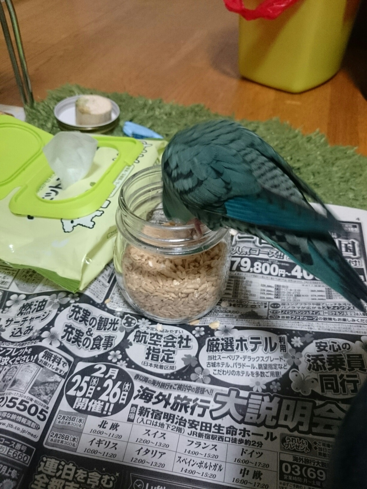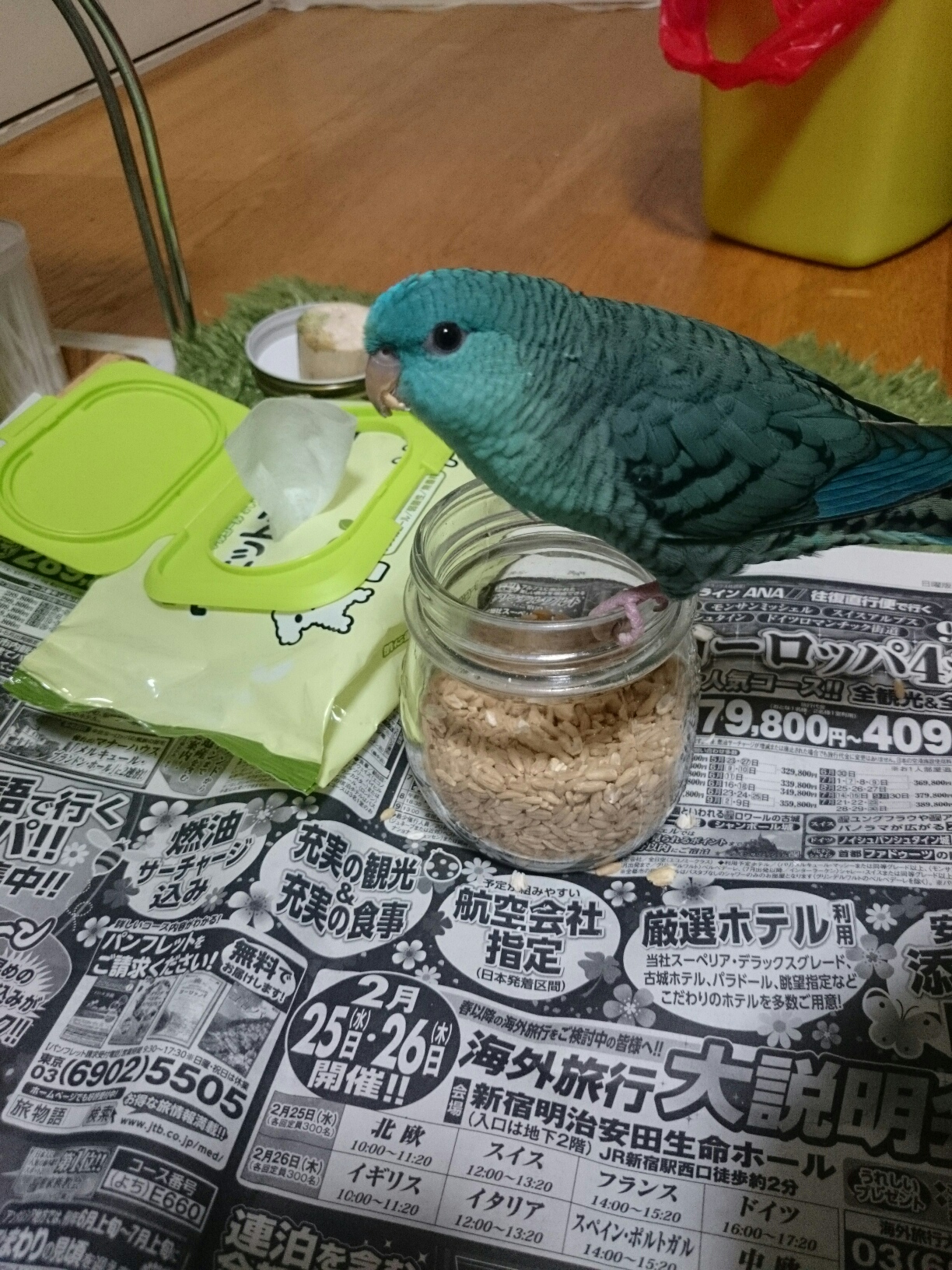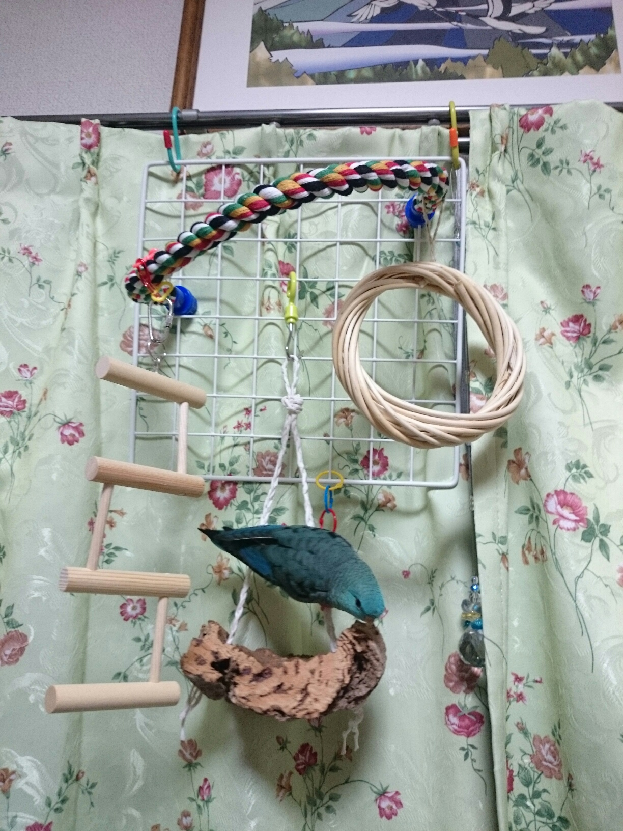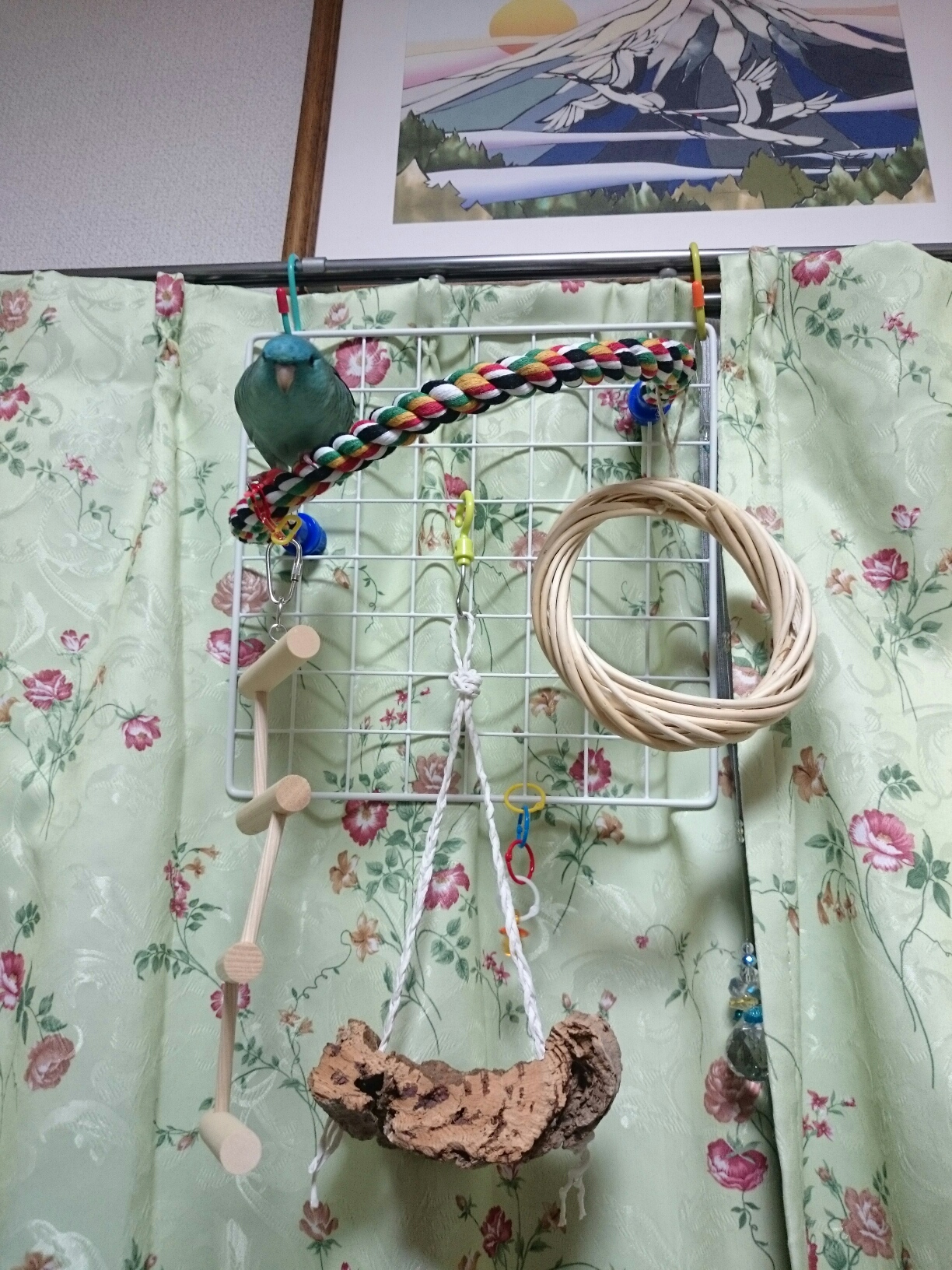 いつも朝出たがってたり、やっと出る時は21時以降なことや、飛ぶだけ飛んであとはあたしの横にいたりが多いので、色々運動してストレス発散もらおうと、100均のあれこれパーツと余りもののパーツで簡易プレイルームを作ってみました。 ジャーン!! ムム、なにやらチェック中…? でもお気に召さないようで、すぐあたしの頭の上に飛んできました… トホホ。 呼び鳴きがまだまだ持続中なので色々手を変え品を変えはしてみているのに、何故隣にいるのにけたたましい呼び鳴きをするのだ、パピコよ。 最後にぽちっとどうぞ♪ にほんブログ村 |