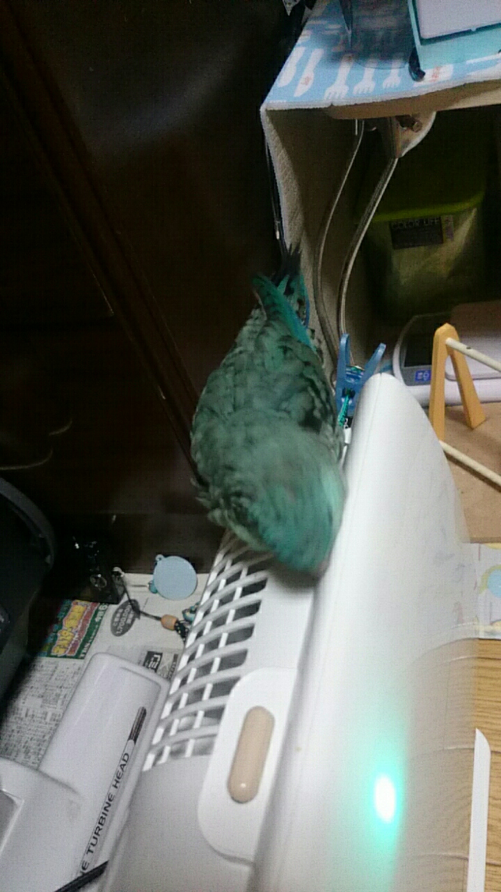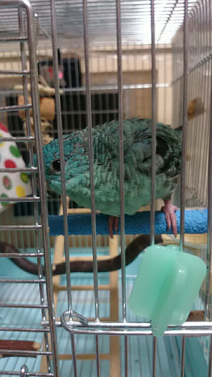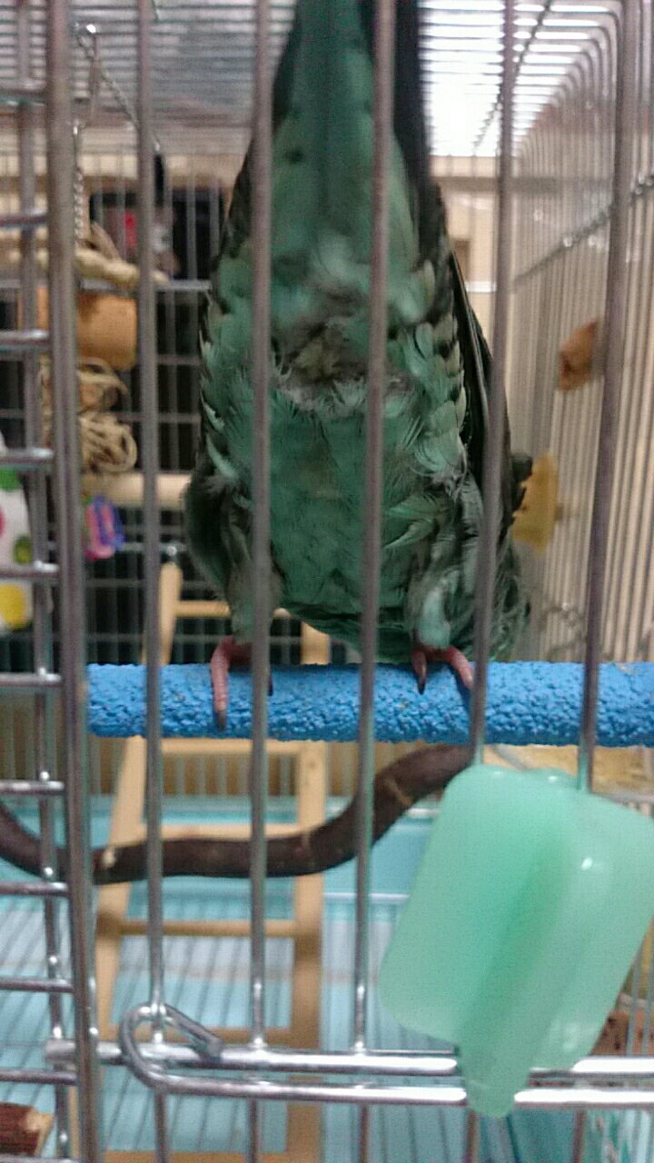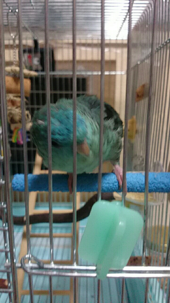 パピちゃんはこのところ御一人様の時は、止まり木ケージには乗らず、床網で毛繕いをしてます。 まだまだ換羽がダラダラと続いていてダルそうなパピちゃんです。 こんなぼこぼこりんに… 鼻炎は昨日はお鼻周りがガサガサだったけど、本日は鼻の穴はキレイでした。 はなくそちゃんではなかった。お薬効いてます♪ヽ(・∀・)ノ♪ やったあ。 今日はあたしが居たのがわかってるみたいで呼び鳴きを繰り返してた。 お外に出してあげたら飛び回るのは少々で後はずっと指の上。そして大好きなぶとうをケージの中に入れてもなかなか入らなかった。 平日はそんな事しないのに。なんか申し訳ない…いっぱい遊んであげられないでごめんね。 物分かりのいい子を強いてしまったのかなぁ。 最後にぽちっとどうぞ♪ にほんブログ村 |